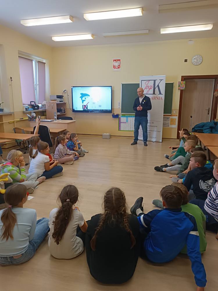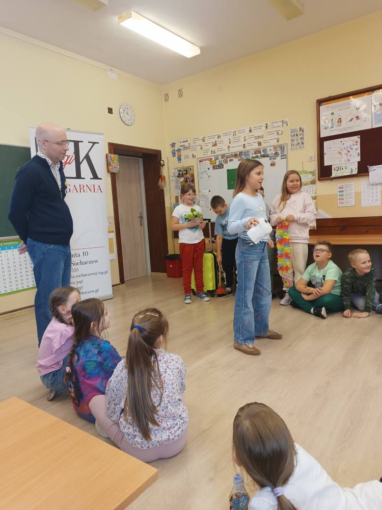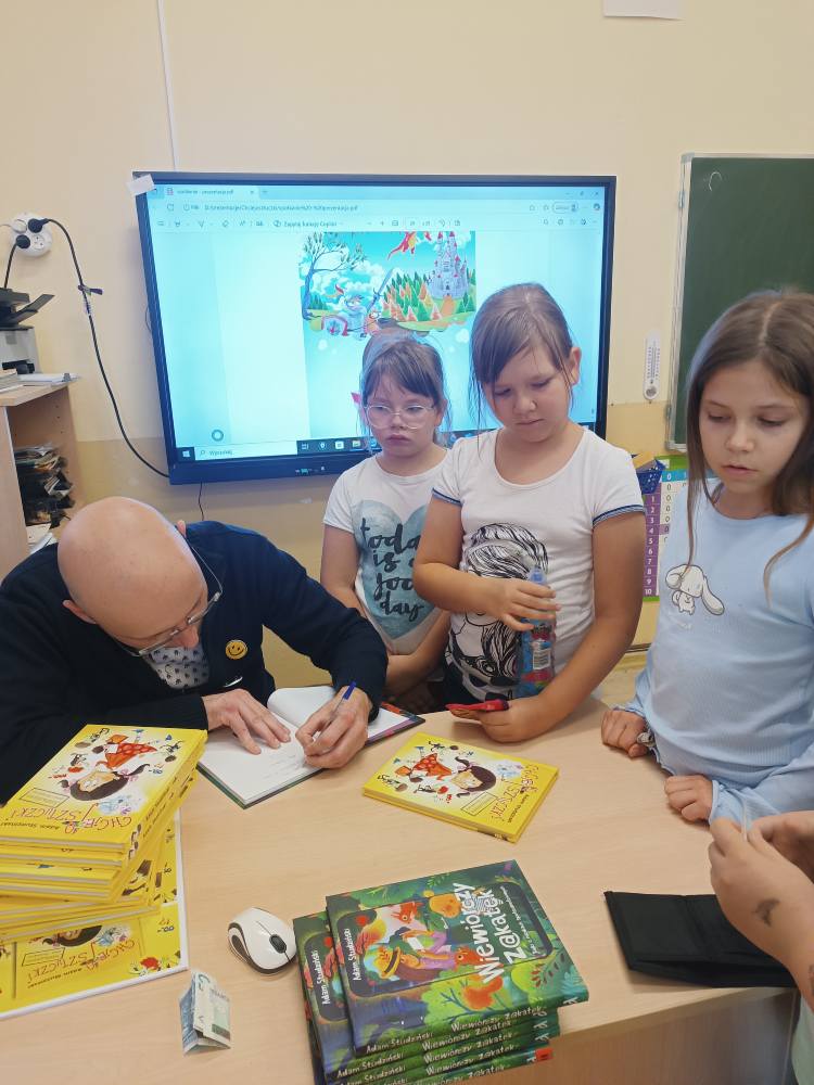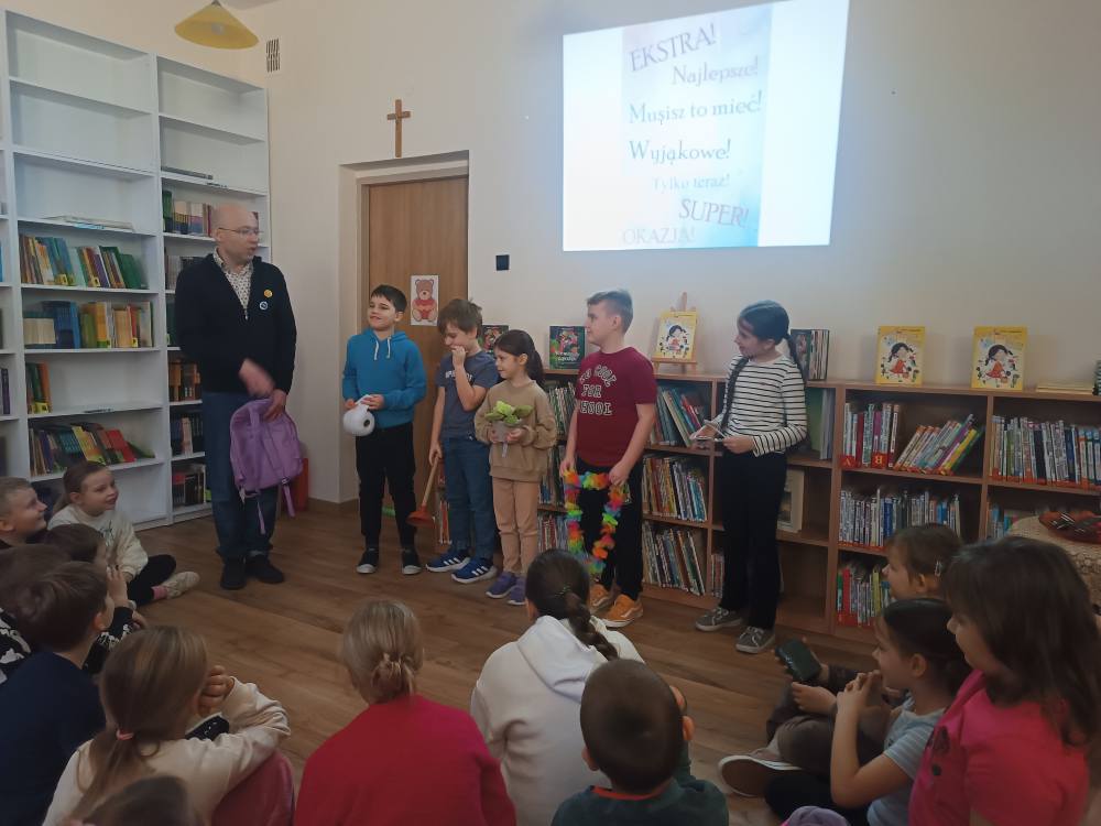 13.11.2025 uczniowie z klas I, II i III ze Szkół Podstawowych w Śladowie i Lasocinie wzięli udział w spotkaniu autorskim z Adamem Studzińskim autorem książek dla dzieci. Dzieci poznały reklamowe sztuczki i dowiedziały się jak się nie dać na nie nabrać. ![]()