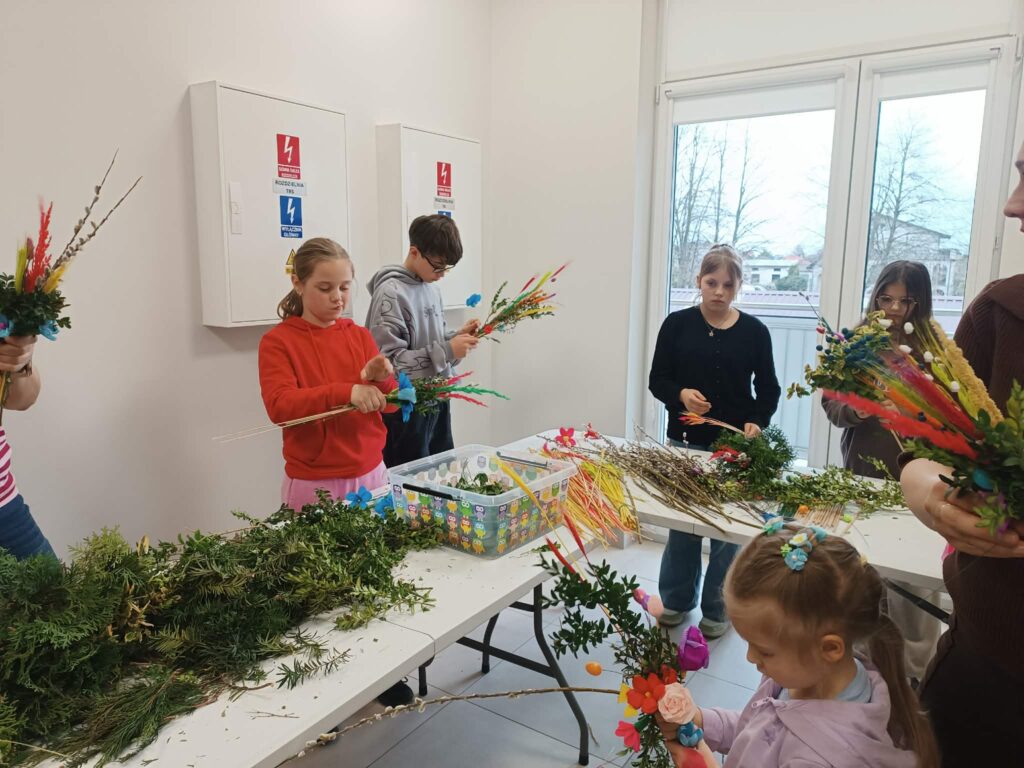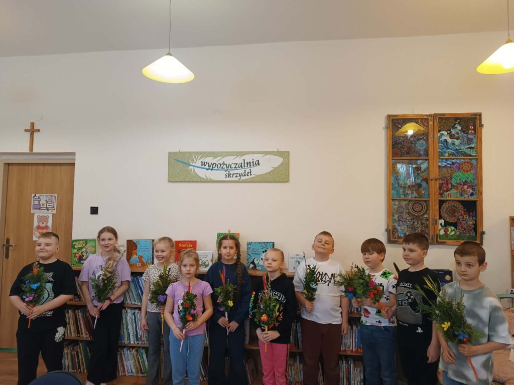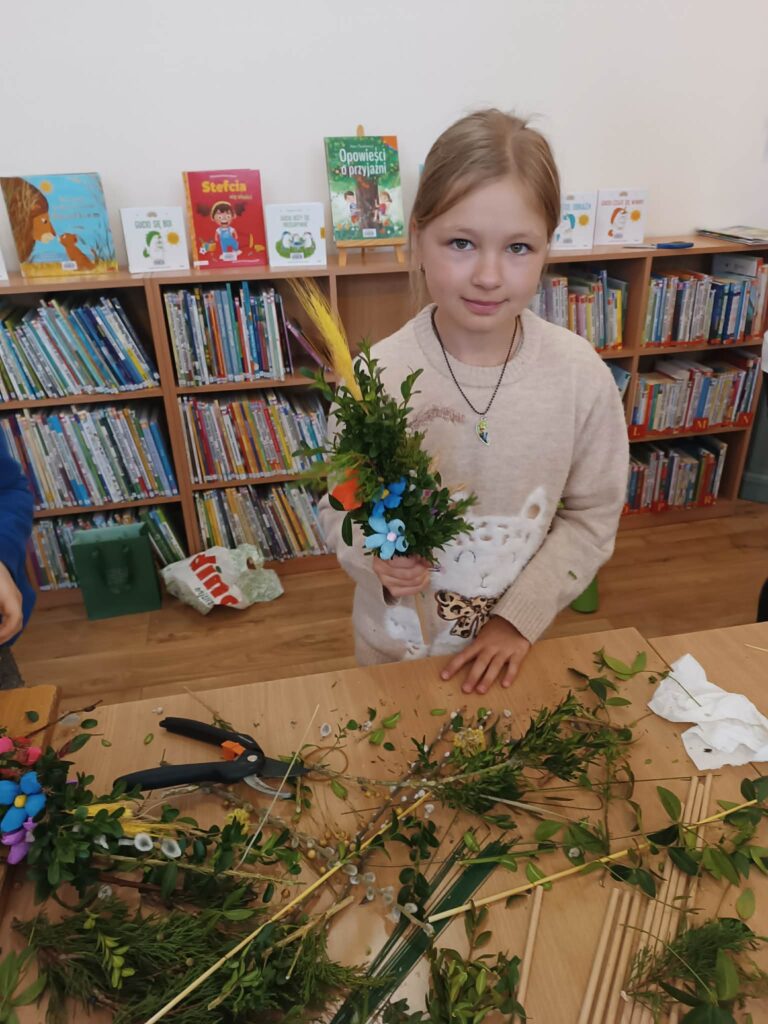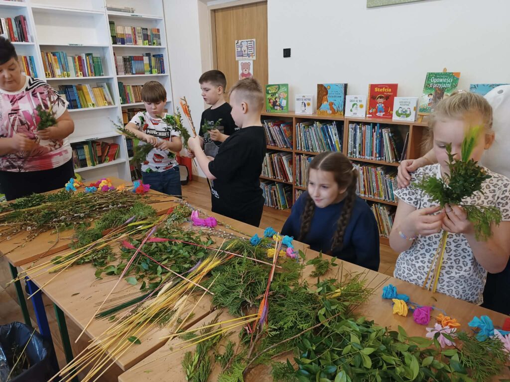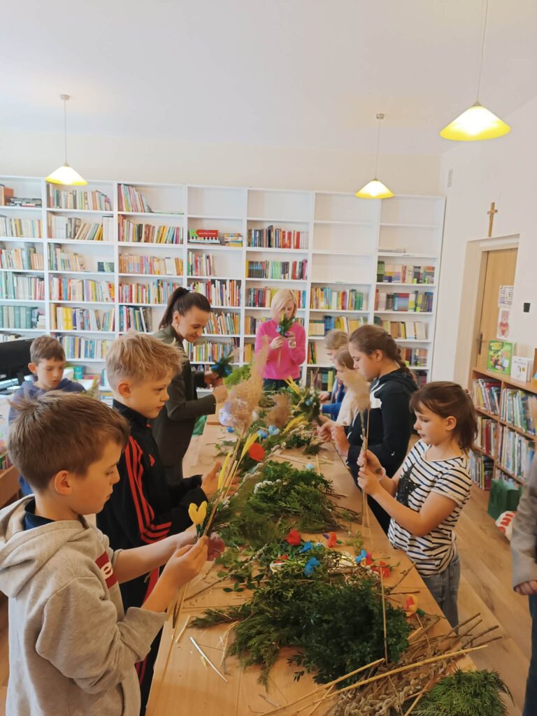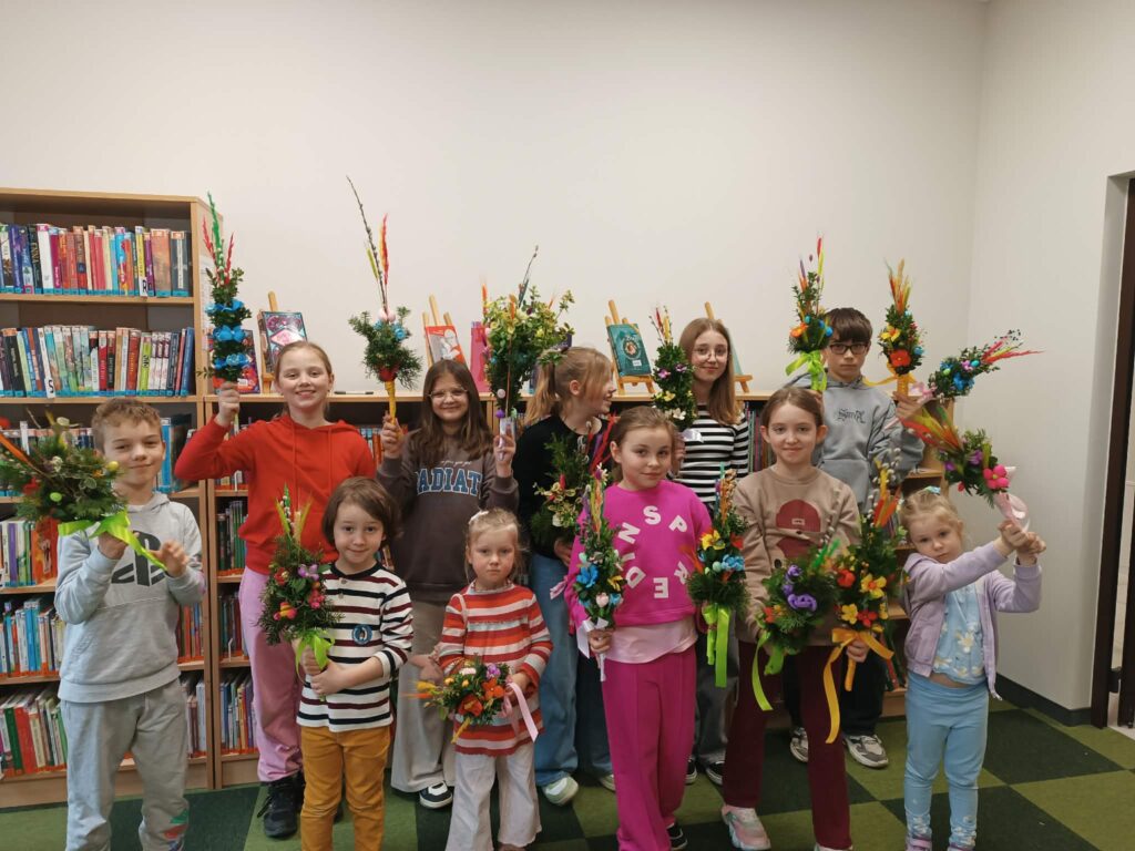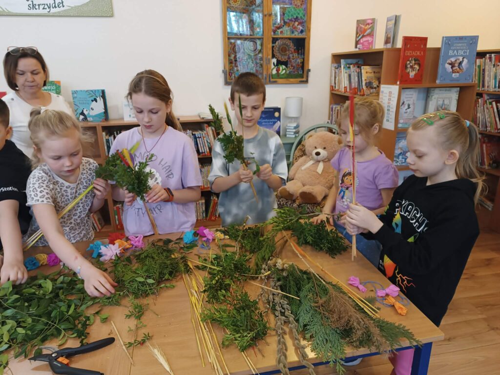 Zielono, kolorowo i wesoło! Tak było podczas warsztatów robienia palemek w bibliotece w Brochowie oraz filii Śladów. Dziękujemy za obecność 🙂
